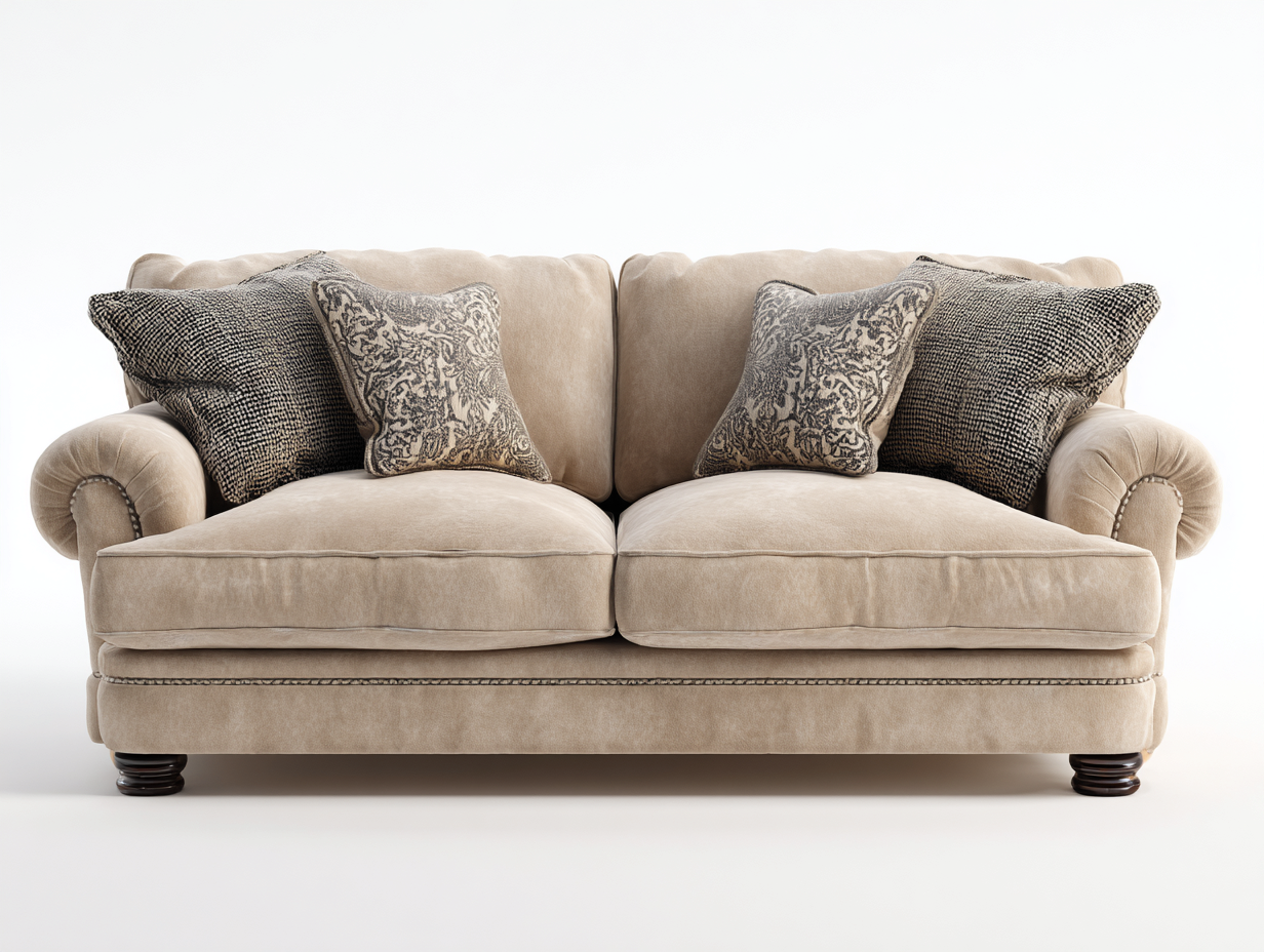 Divano a due posti dallo stile classico ed elegante, ideale per arredare il soggiorno con comfort e raffinatezza. Le forme morbide e i braccioli arrotondati creano un aspetto accogliente, adatto a diversi contesti abitativi.