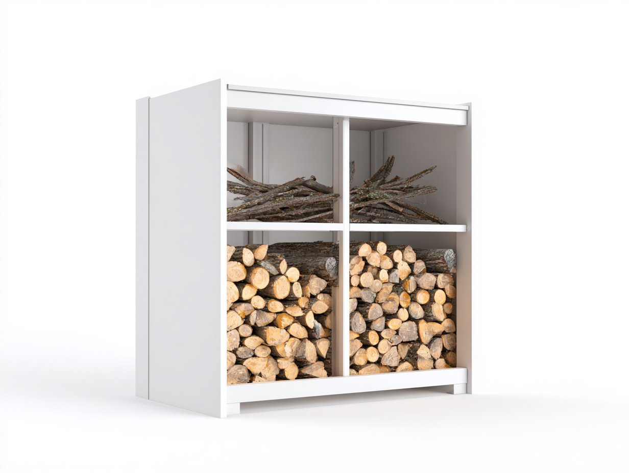 Gli scomparti suddivisi facilitano l'organizzazione dei ceppi e dei rami, mantenendo la legna separata e facilmente accessibile. Il design verticale ottimizza lo spazio disponibile.
